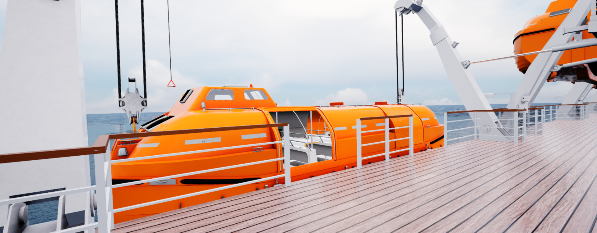 • Familiarisering – bli kjent med livbåten og daviten, lær hvordan VR-utstyret brukes, og få en bedre forståelse av hvordan simulatoren er bygget opp.